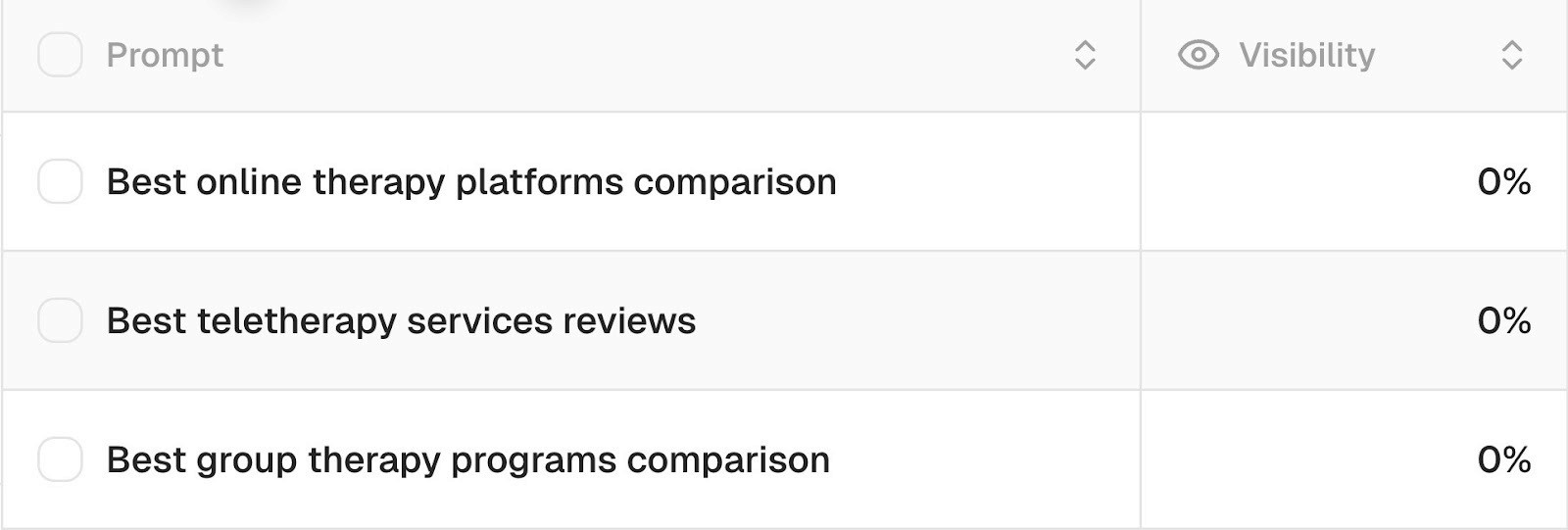 We focus specifically on brand mention gaps (prompts where your brand isn't mentioned at all) rather than improving existing mentions or measuring ROI - we'll cover those topics in future guides.