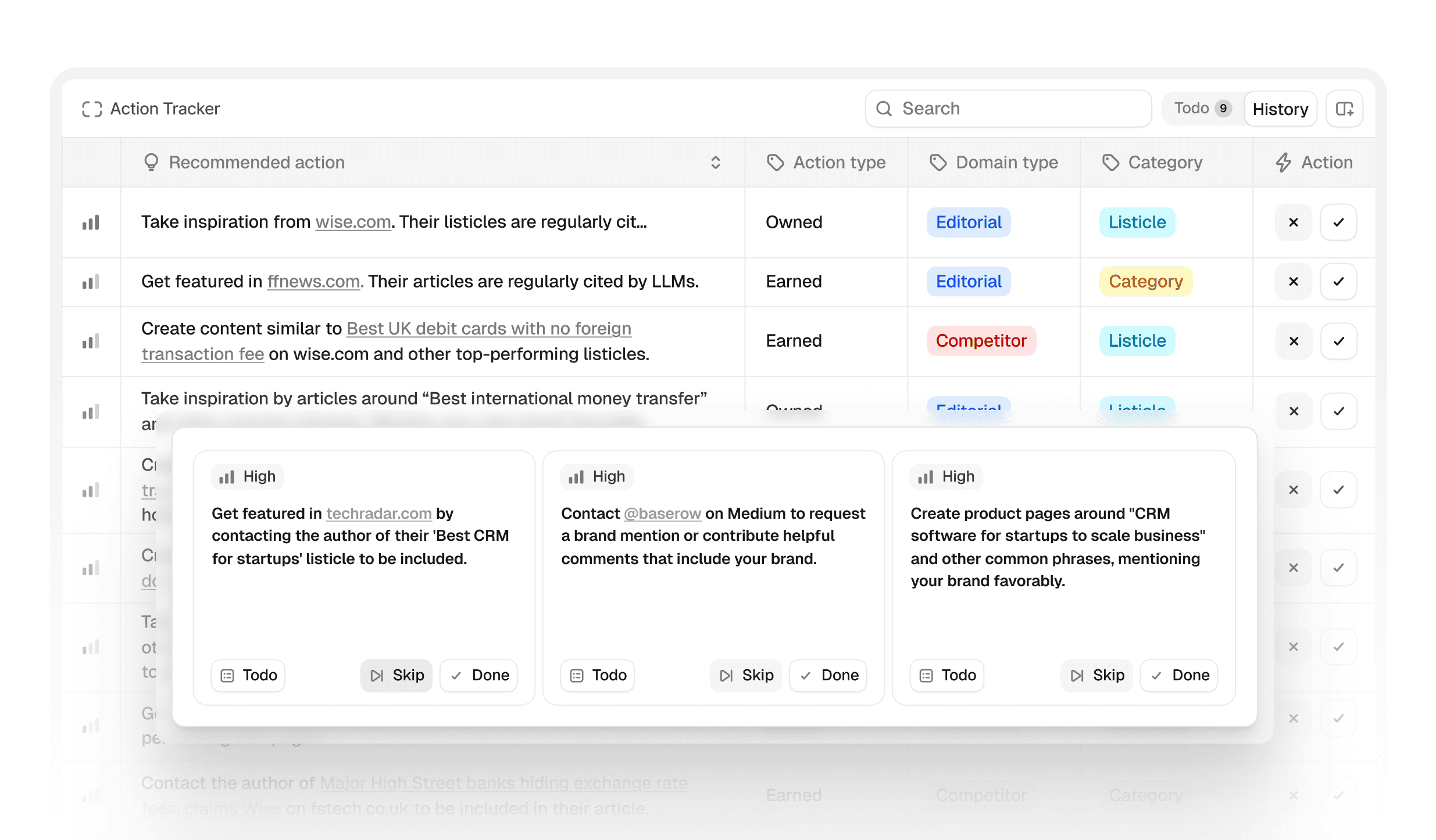 Peec AI's Actions module shows you what type of content to create to succeed in AI search - based on what's actually getting cited, not theoretical best practices.