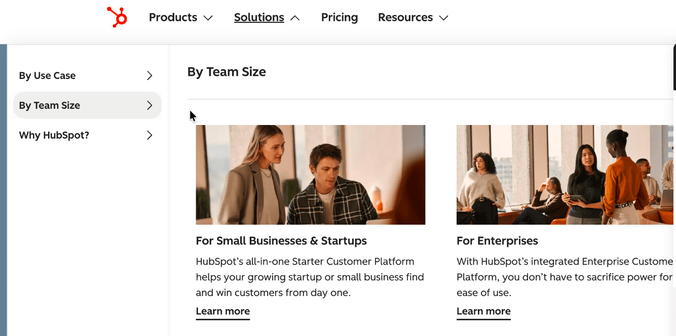 Team size: Small teams, mid-market, enterprise (HubSpot does this)