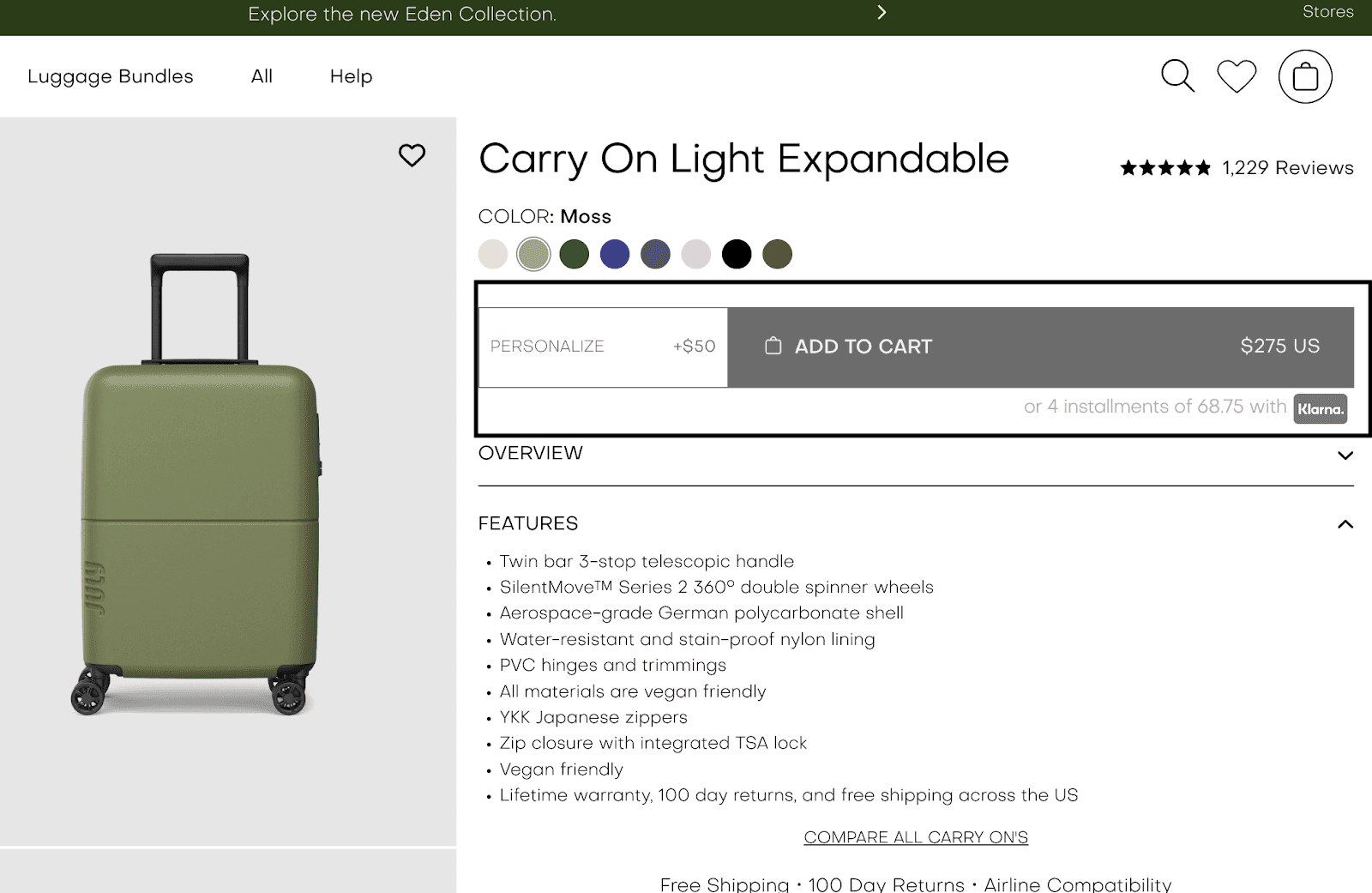 Select your chosen item and compare prices across different merchants. Here we go with Briggs & Riley:
